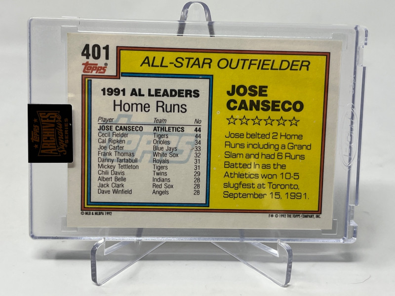 Jose Canseco Autograph Card #'d /13 Topps 2021 Archives Signature Series Serial #'d 4/13 Encased