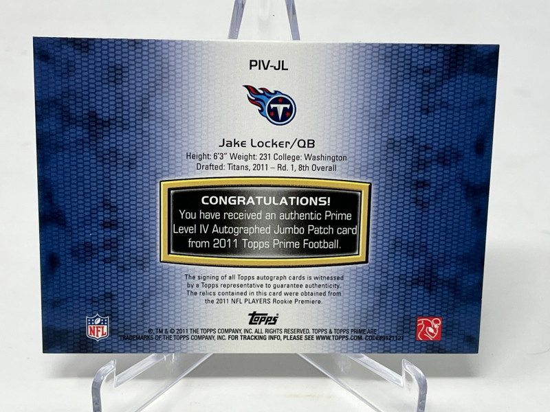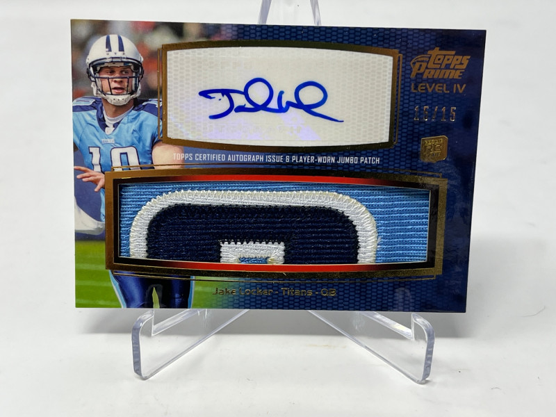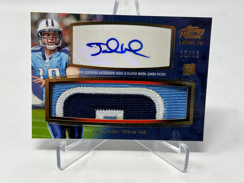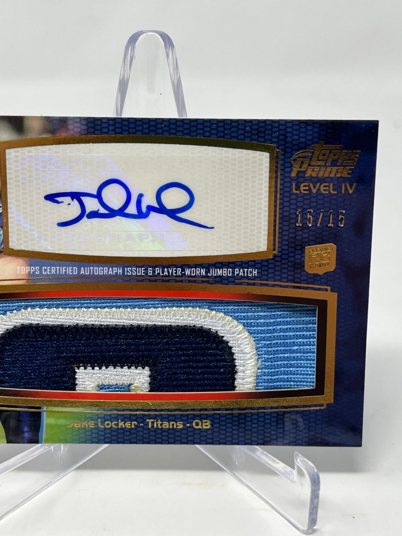 2011 Topps Prime Level 4 Jake Locker Rookie Patch Autograph Serial Numbered15/15 University of Washington/Tennessee Titans QB