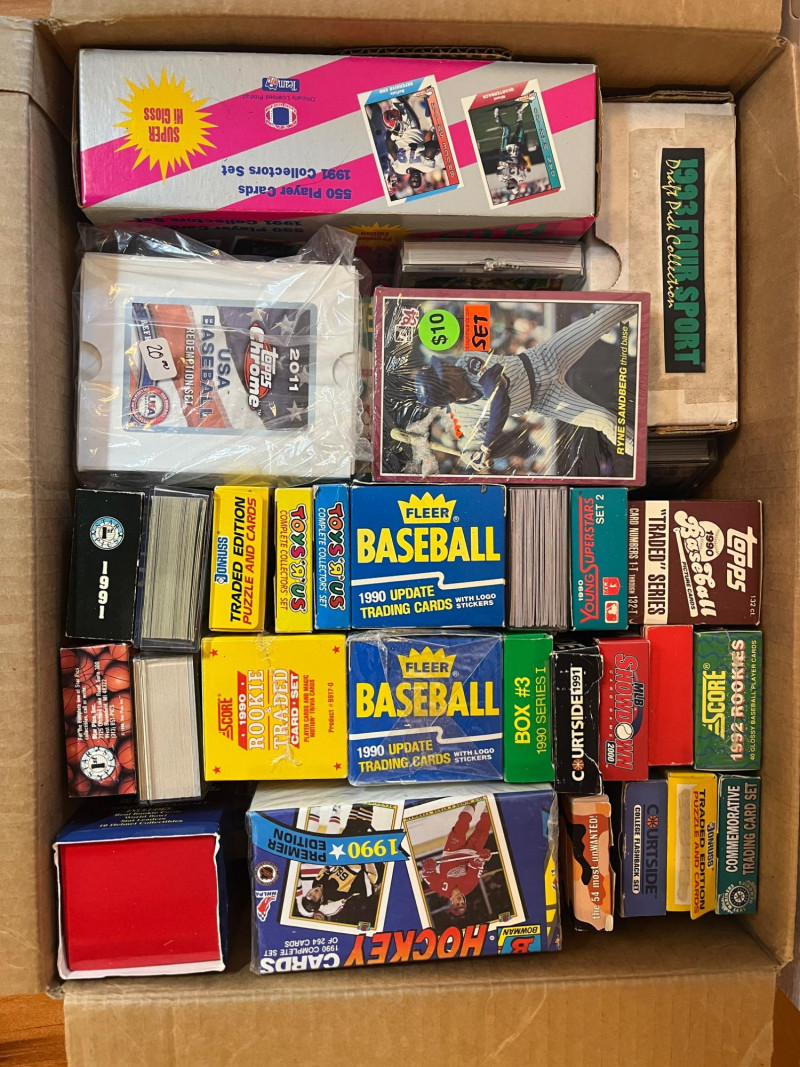 Large Box Of Vintage Sports Cards 17 x 13 x 13 Box Filled To The Top!
