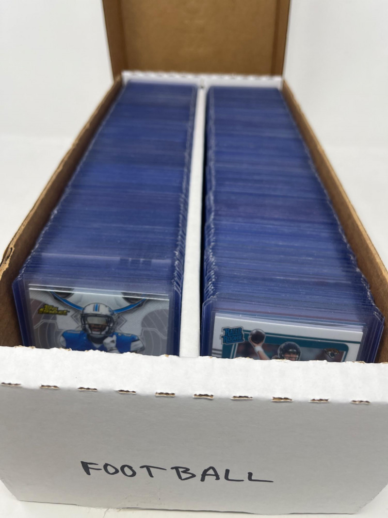 Large 2 Row Box of NFL Legend/Rookies Sports Cards #1 250+ Cards Josh Allen, Trevor Lawerence, + More Rookie Cards, Short Prints, All Sleeved & Top Loaded All NFL Legends, Rookies, Current Stars! Unreal Value!