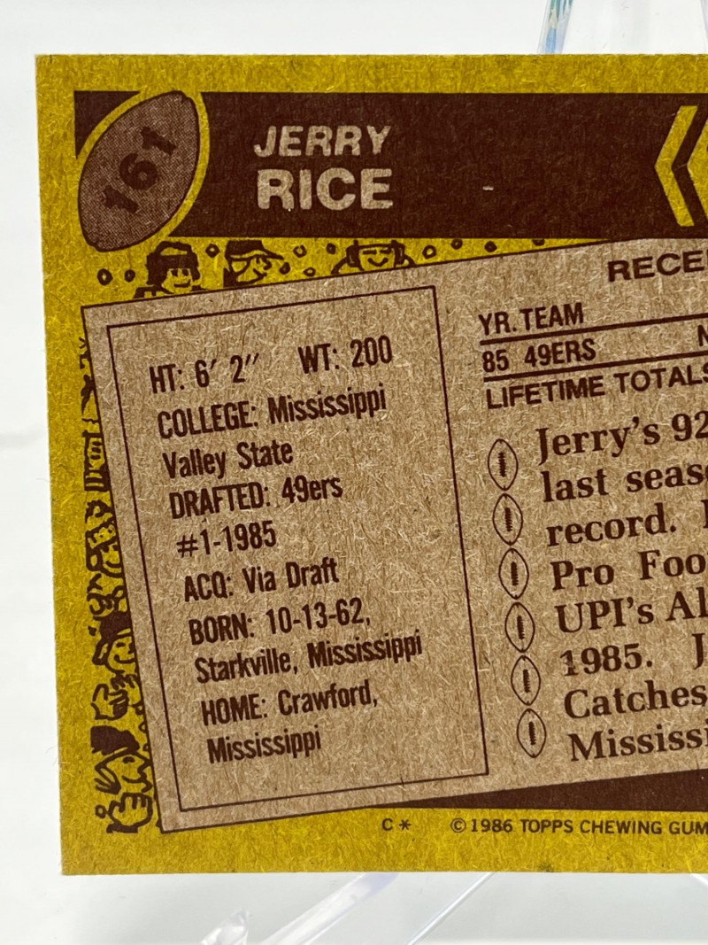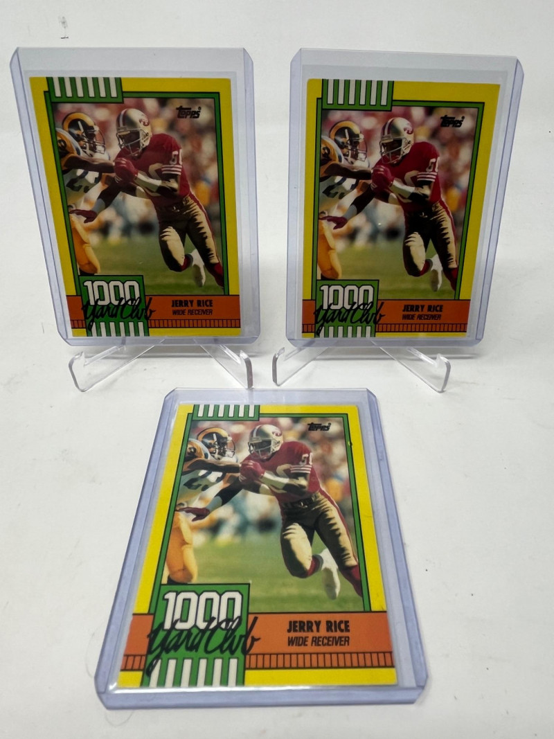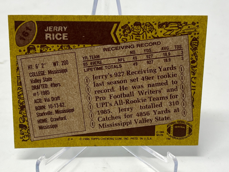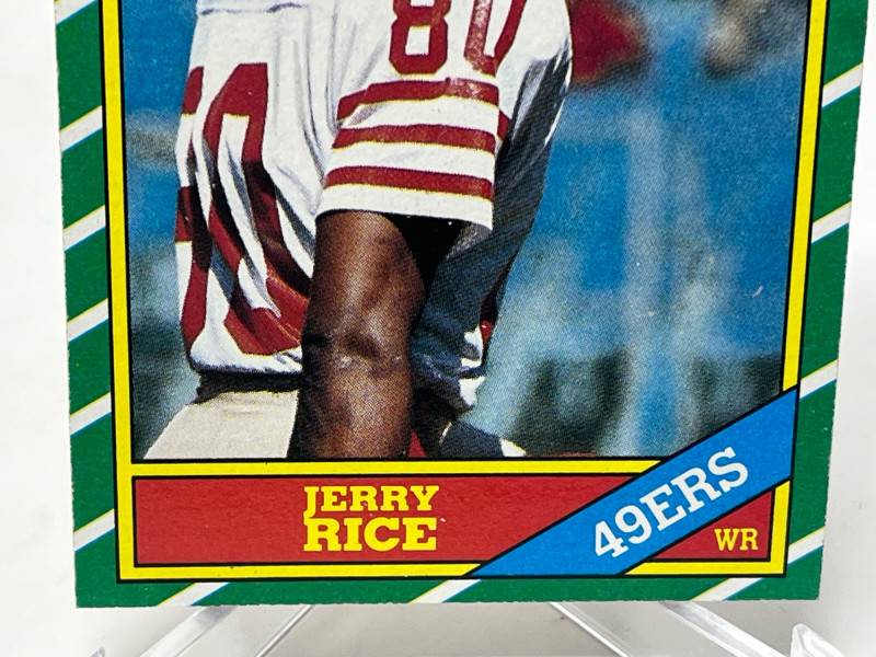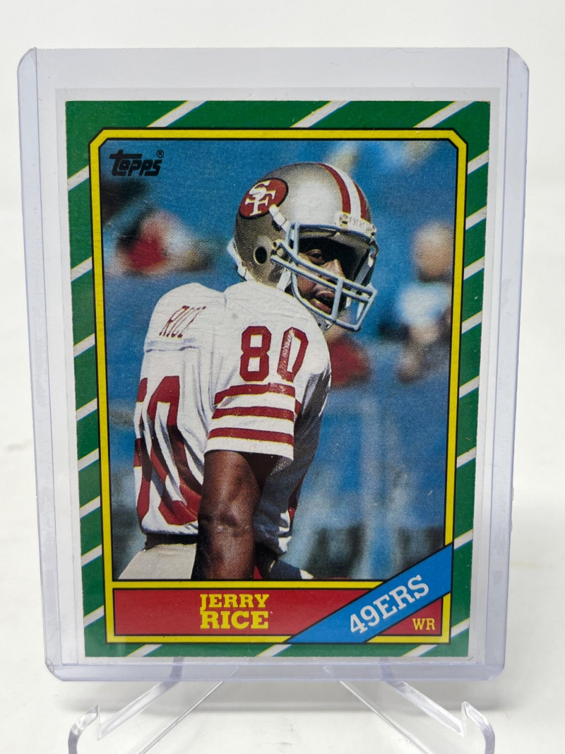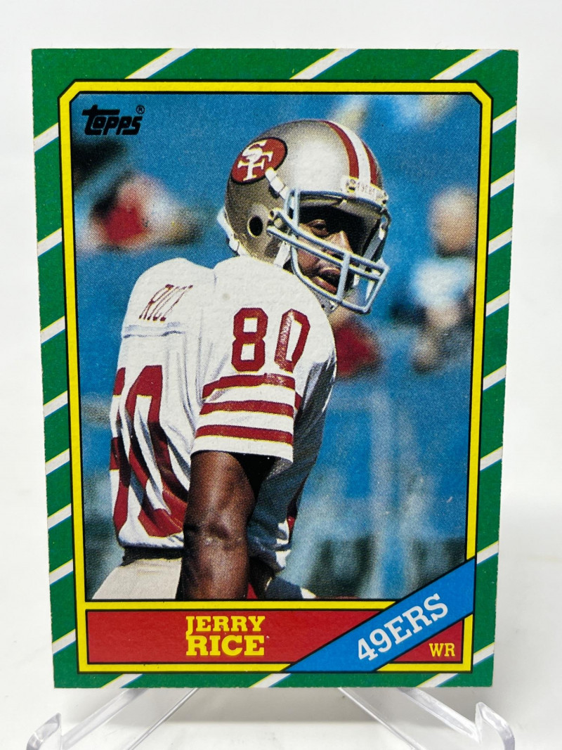 1986 Topps Jerry Ricke Rookie + 13 J. Rice Cards 1986 Topps Jerry Rice Rookie Card Raw/Ungraded. My opinion is this would get a PSA 7 on the lower end and a PSA 9 on High End. Lot Also Contains 13 Other Jerry Rice Cards All Cards Pictured/ 14 Cards Total