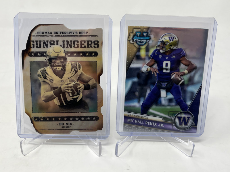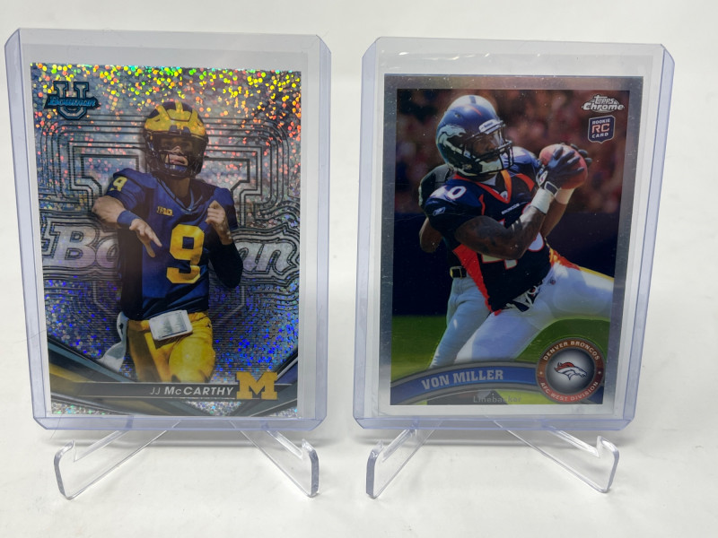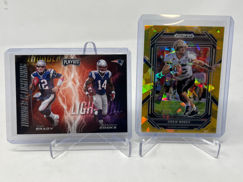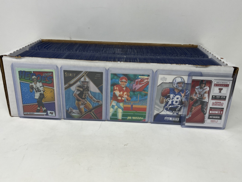 Full 2 Row Box Of Current NFL Stars & HOF'ers! 200-250+ Cards Of Just Modern QB's, Stars, HOF'ers! A lot of players with multiple cards! Estimated Each Card $3-$7 EA Not All Cards Are Pictured All Cards Sleeved/Top Loaded Mint+