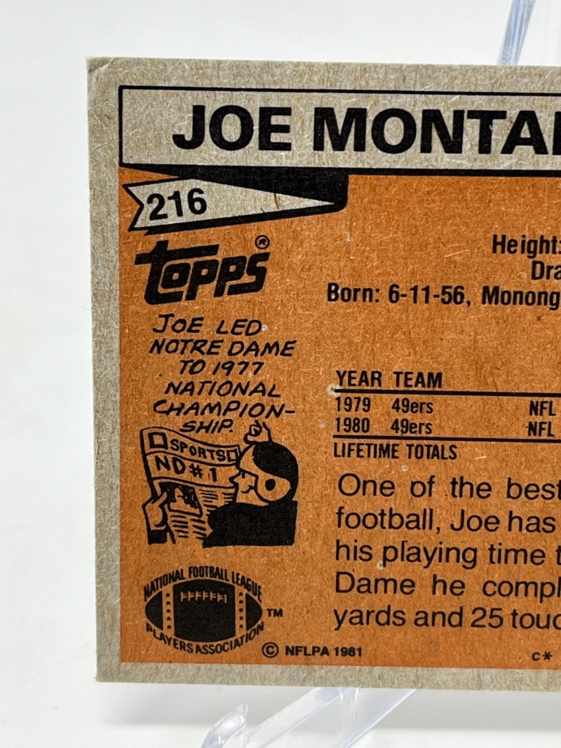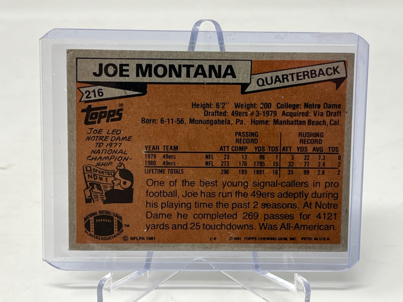 Lot # 27 - 1981 Topps Joe Montana Rookie Card