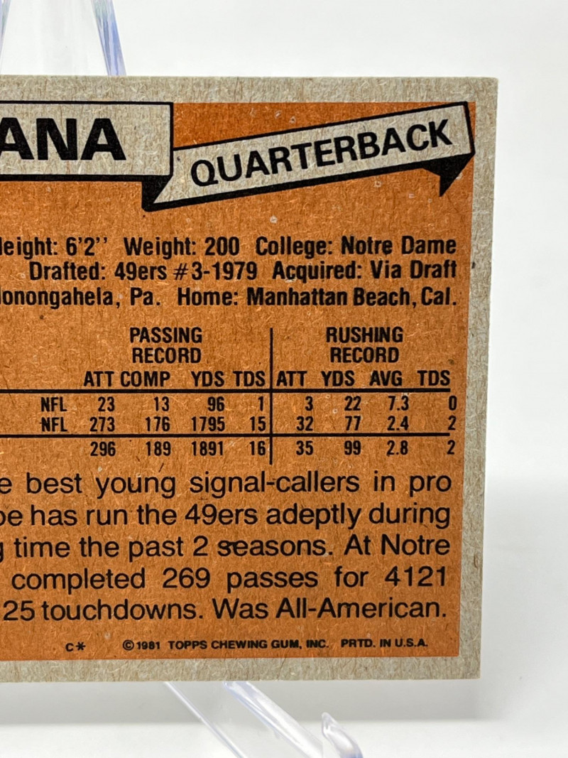 1981 Topps Joe Montana Rookie Card Ungraded Raw See Top Left Corner Ding