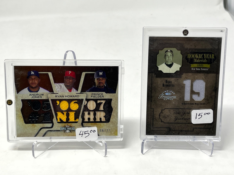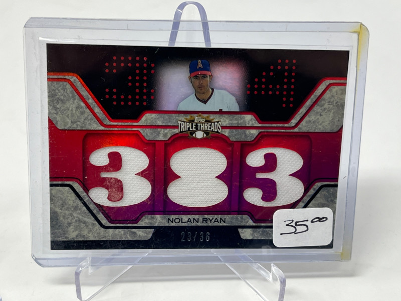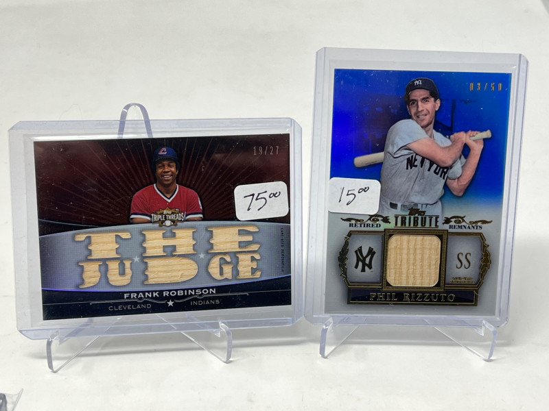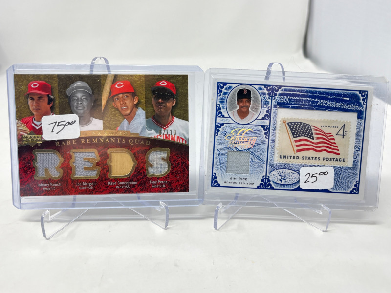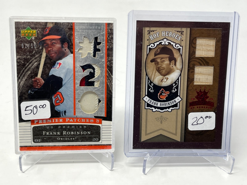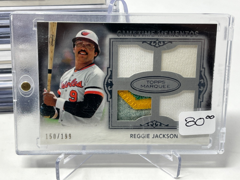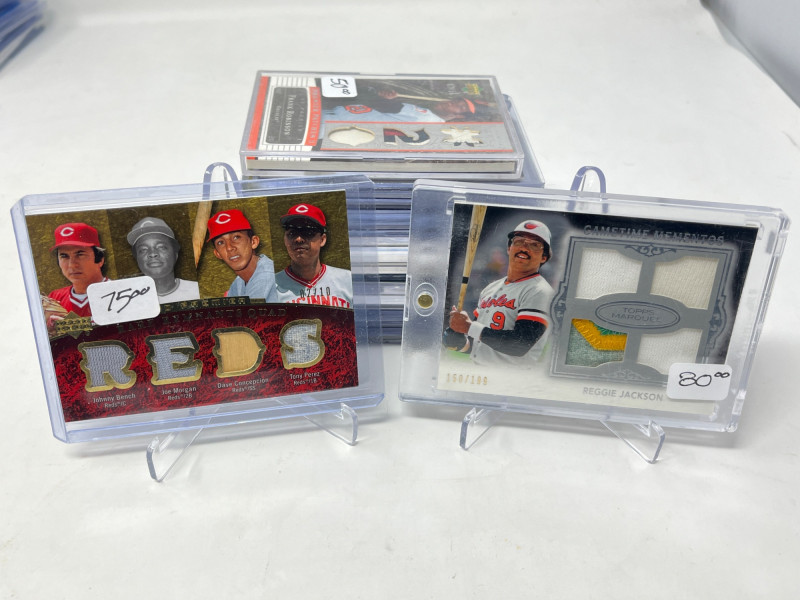 Lot of 20 High End/Low Numbered Sports Cards (Jackson, Ryan, Robinson) All Cards In Lot Pictured. All Cards Sleeved & Top Loaded. Reggie Jackson Quad PAtch, Nolan Ryan, Frank Robinson, Cincinatti Reds Big Red MAchine Quad Player Relic, + More!