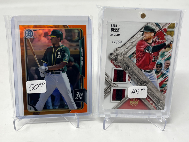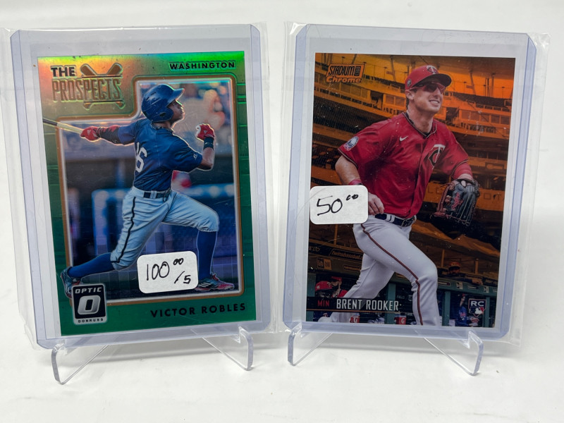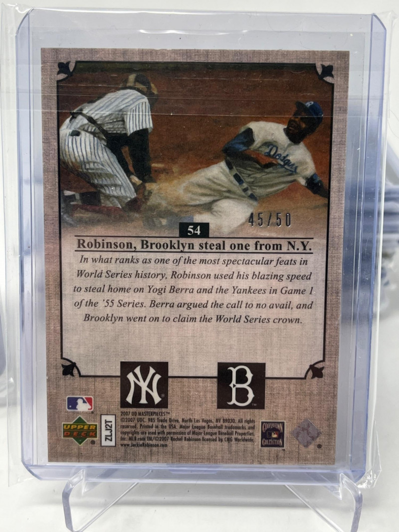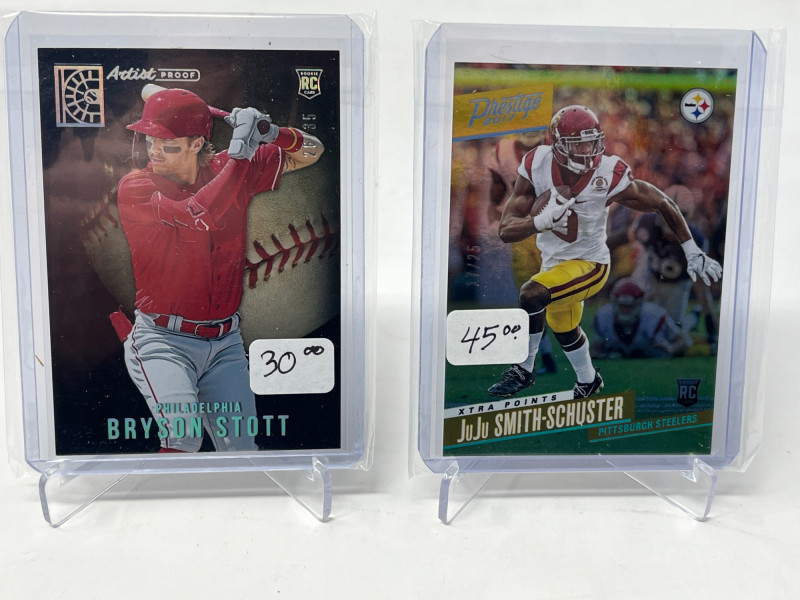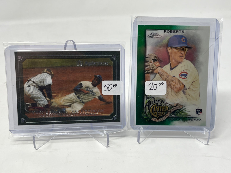 Lot of 20 High End/Low Numbered Sports Cards (Jackie, Ripken, Pujols) All Cards In Lot Pictured. All Cards Sleeved & Top Loaded See Yogi Berra/JAckie Robinson #'d /50, Victor Roble /5, Albert Pujols, Juju Smith-Schuster, & More!