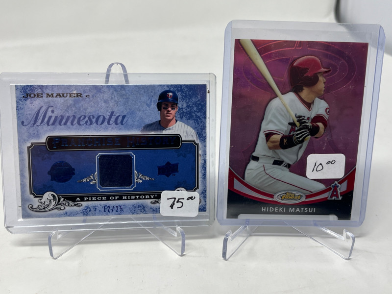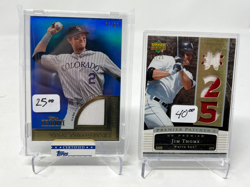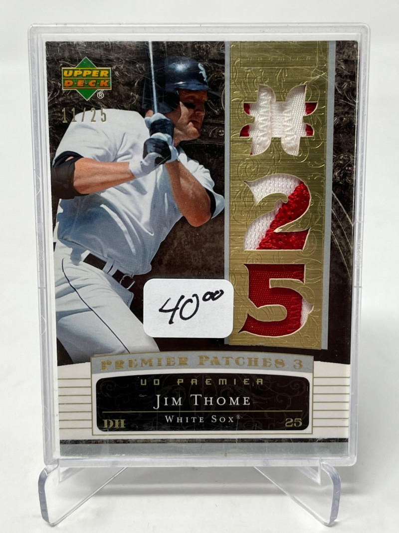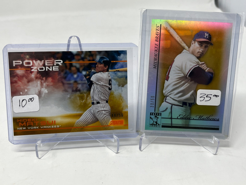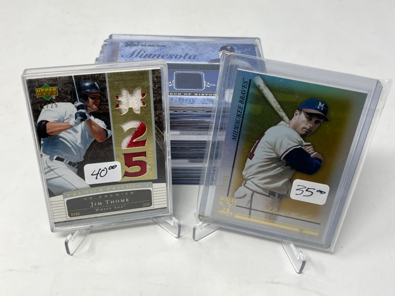 Lot of 20 High End/Low Numbered Sports Cards (Thome, Mauer, Matsui) All Cards In Lot Pictured. All Cards Sleeved & Top Loaded Jim Thome Patch /25, Eddie Matthews, Hideki Matsui, Joe Mauer, + More!