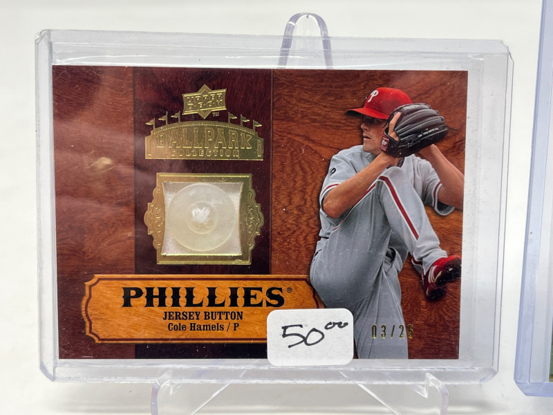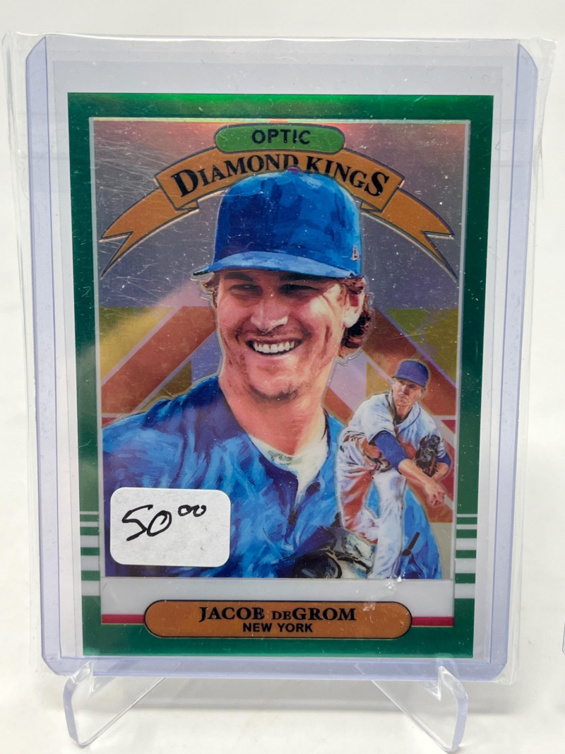 Lot of 20 High End/Low Numbered Sports Cards (Chipper, Boggs, DeGrom) All Cards In Lot Pictured. All Cards Sleeved & Top Loaded Lot Includes: Chipper Jones, Randy Johnson, Jacob DeGrom, & Cole Hamels Button, + More!!