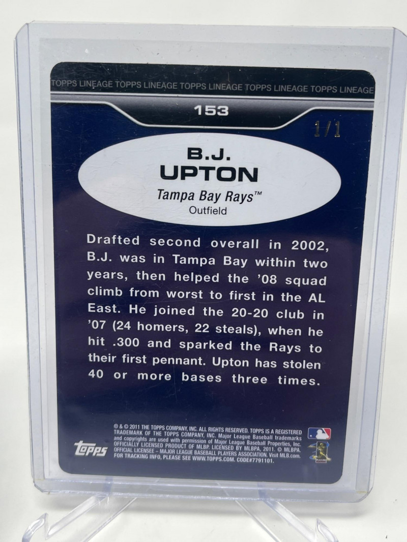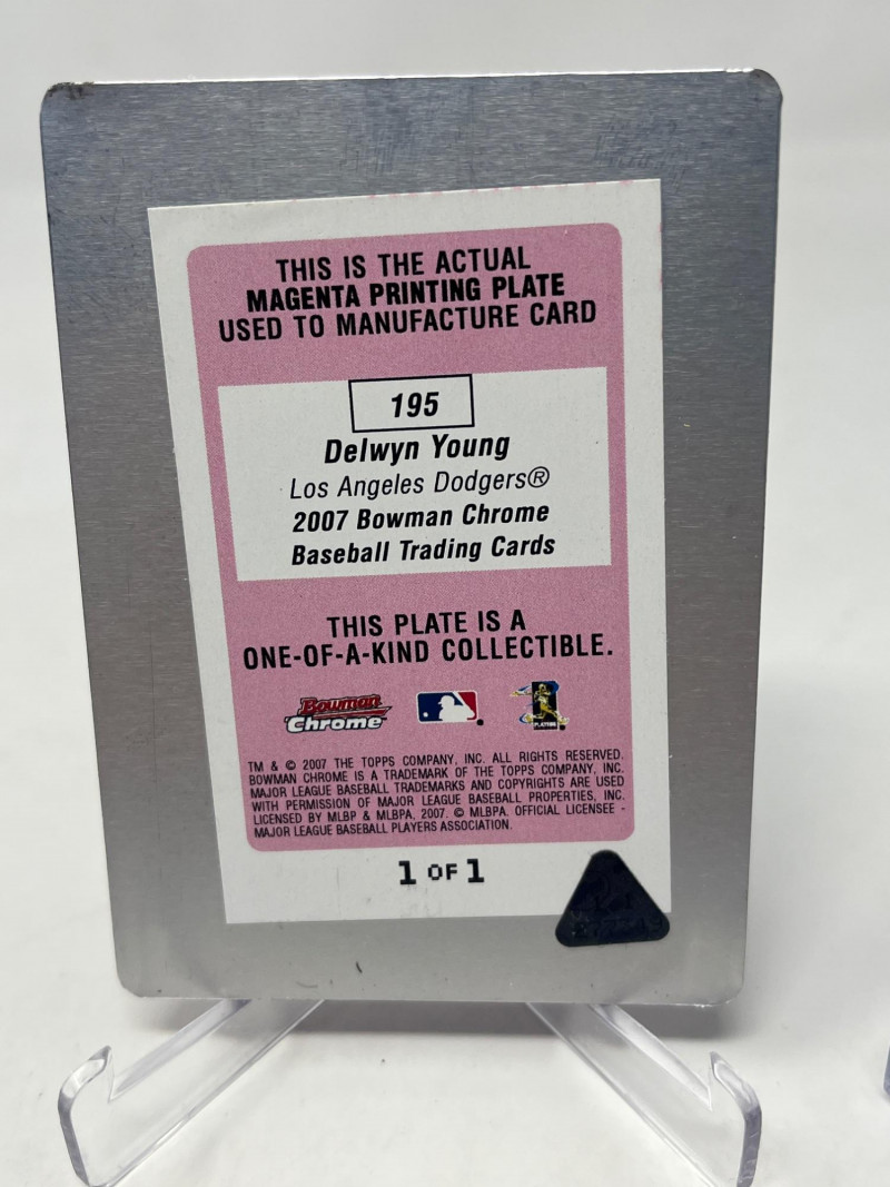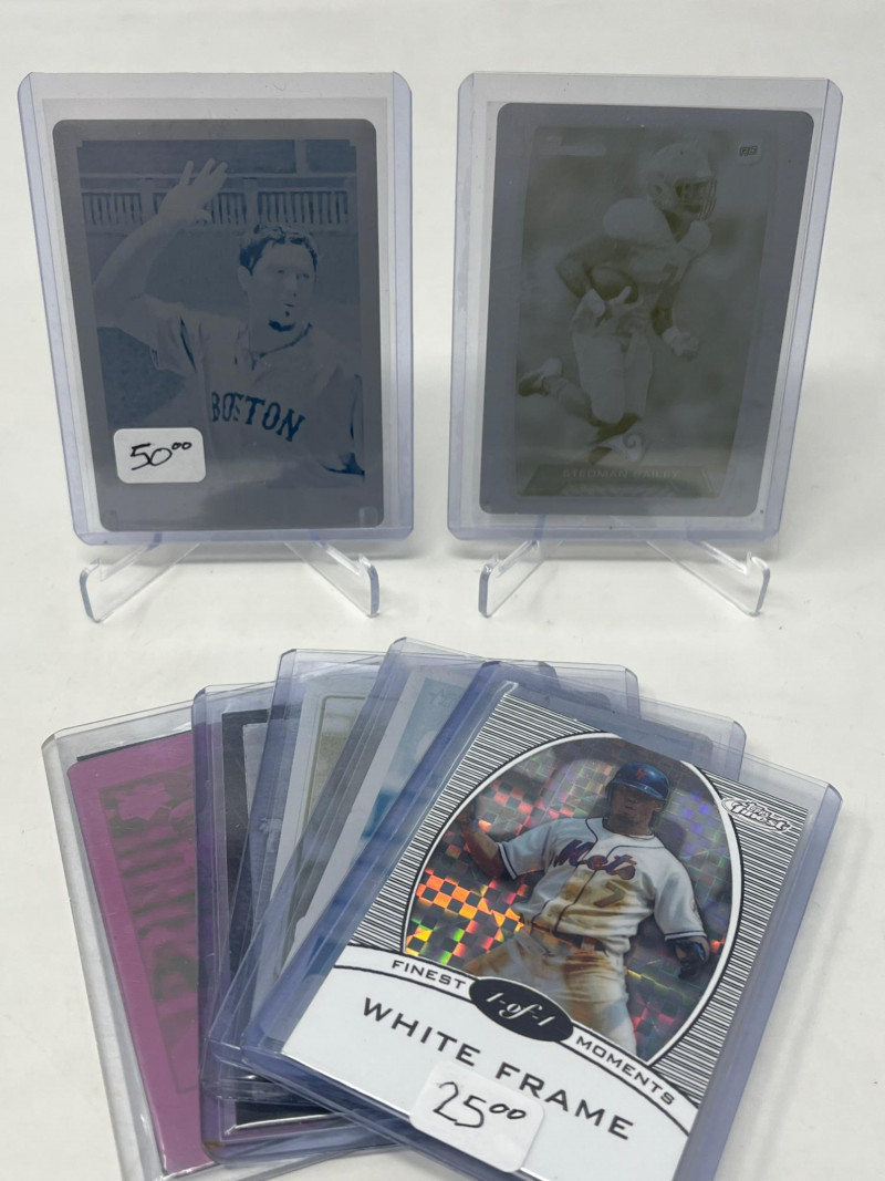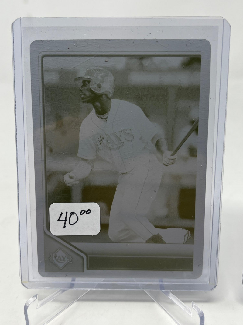 Lot of 7 Printing Plate 1 of 1's (Josh Beckett, Upton) All Cards Pictured Front & Back. All One of One Printing Plates! Players Include: Josh Beckett, Jose Reyes, Stedman Bailey, Josh Zeid, Niko Vasquez, BJ Upton, Delwyn Young