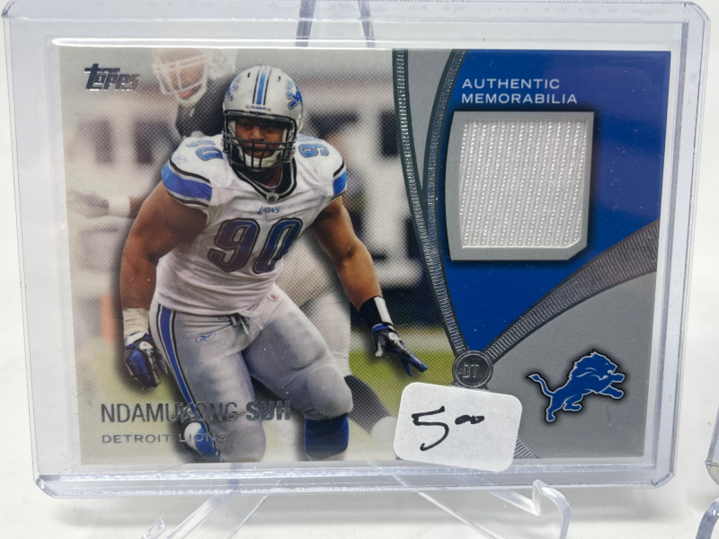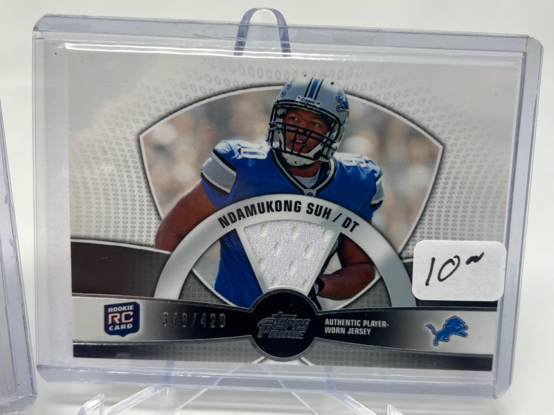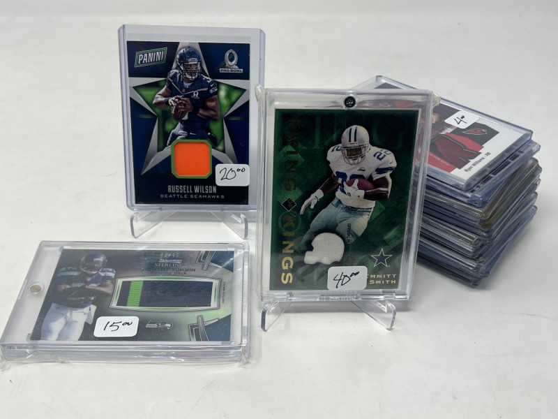 Lot of 25 NFL Relics (E. Smith, Staubach, R. Wilson) All Cards Pictured Above All cards Sleeved & Top Loaded Players Include: Russell Wilson, Roger Staubach, N. Suh Rookie, and Emmitt Smith + More!