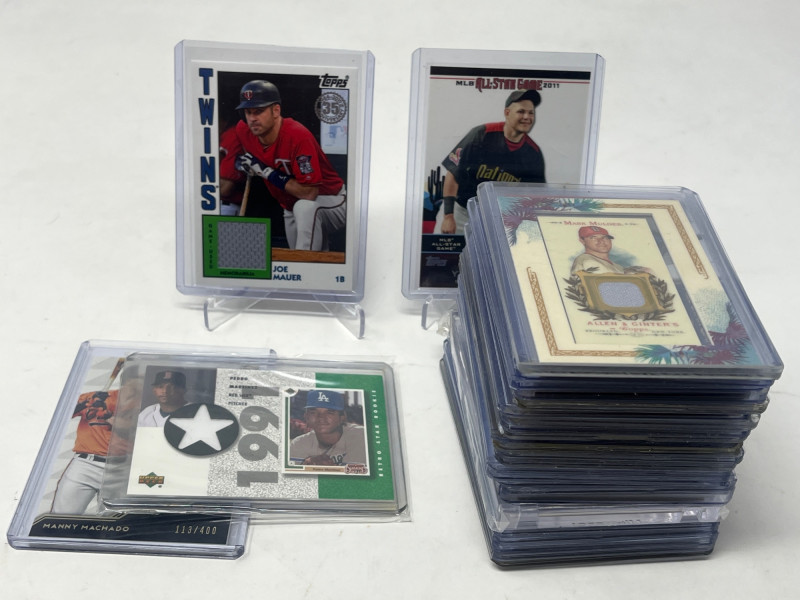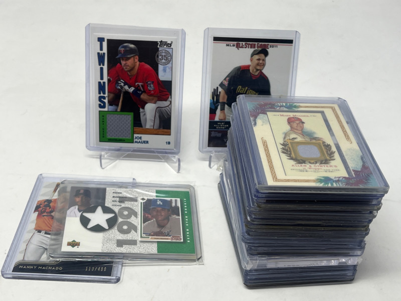 Lot of 30 MLB Relics (Pedro, Mauer, Yadier Molina) All Cards Pictured All Cards Sleeved & Top Loaded