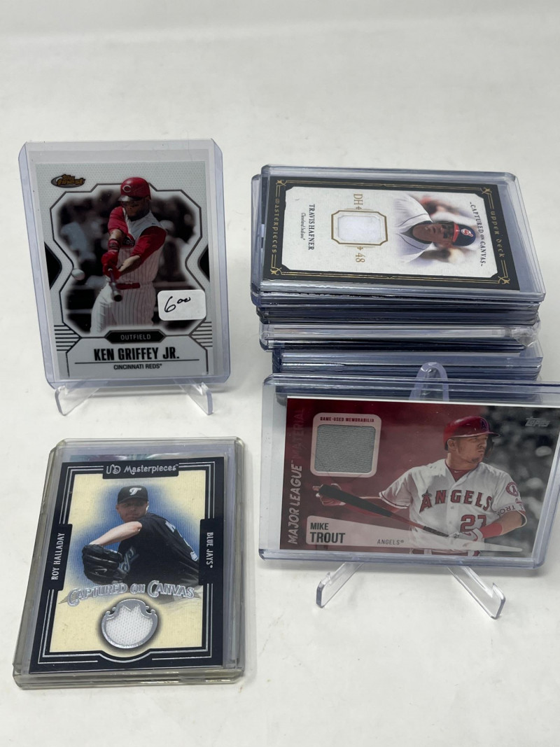 Lot of 30 MLB Relics (Trout, Glavine, Vlad Jr.) All Cards Pictured All Cards Sleeved & Top Loaded
