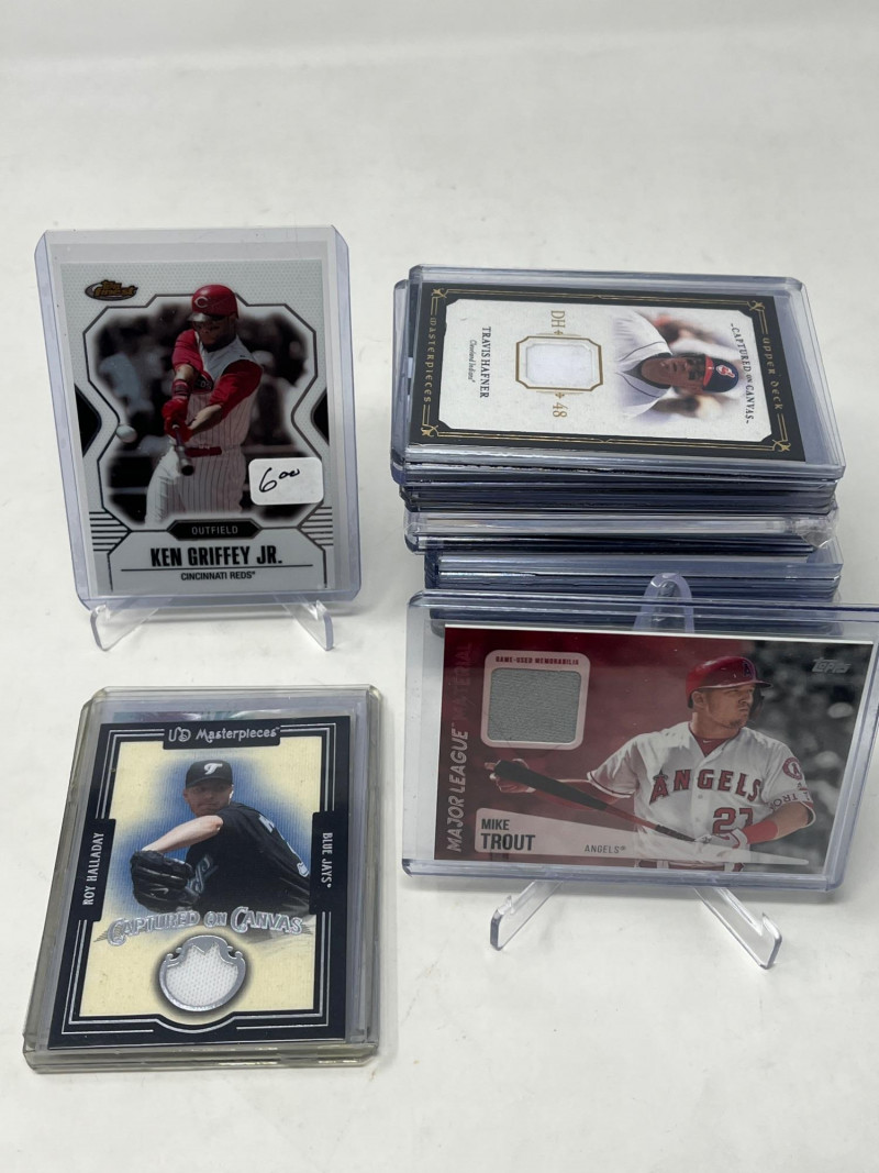 Lot # 65 - Lot of 30 MLB Relics (Trout, Glavine, Griffey, Vlad Jr.)