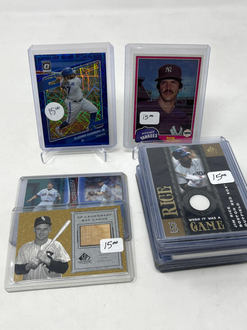 Lot of 25 Short Prints/Relics (Jeter, Vlad Jr., Posey) All Cards Pictured All Cards Sleeved & Top Loaded