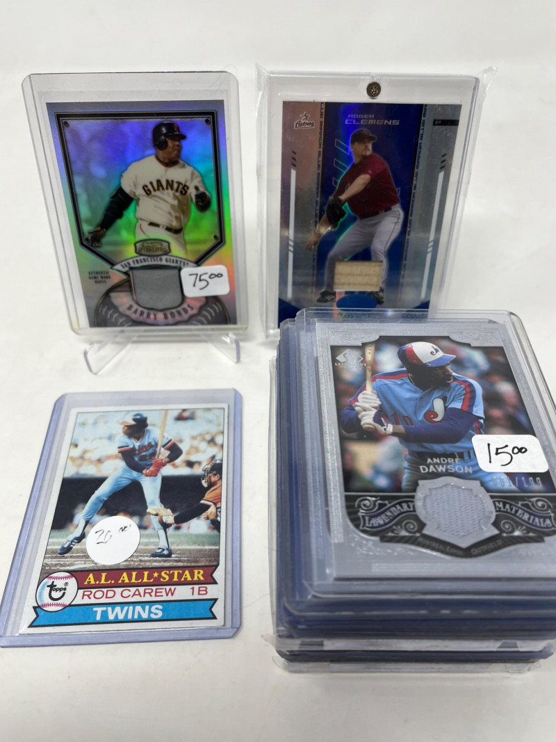 Lot of 25 Short Prints/Relics (Bonds, Clemens, Carew) Rare Barry Bonds Relic All Cards Pictured All Cards Sleeved & Top Loaded