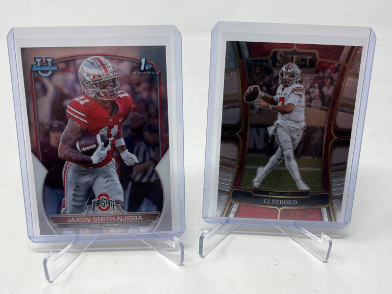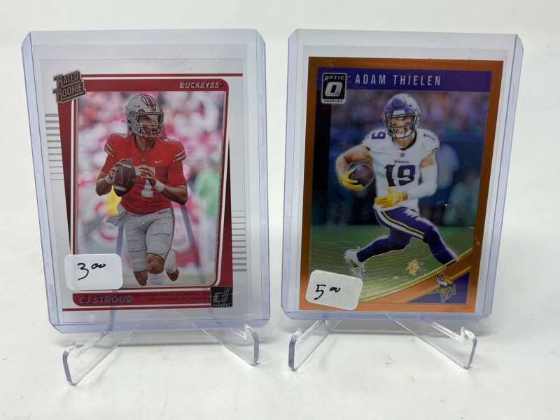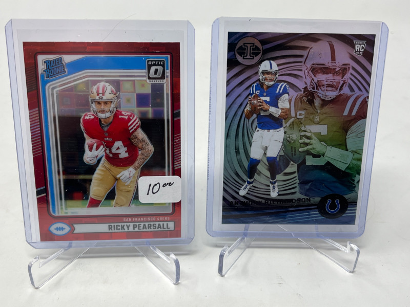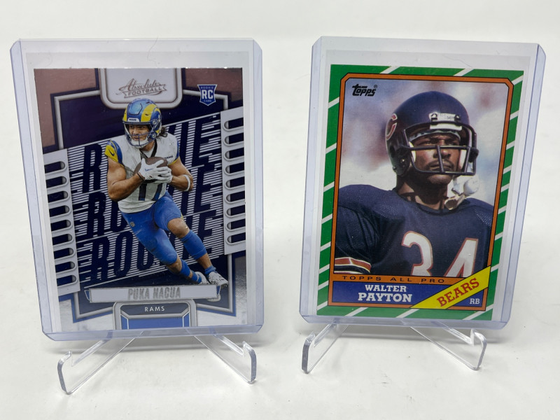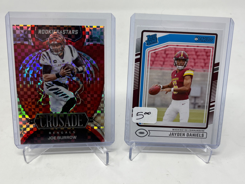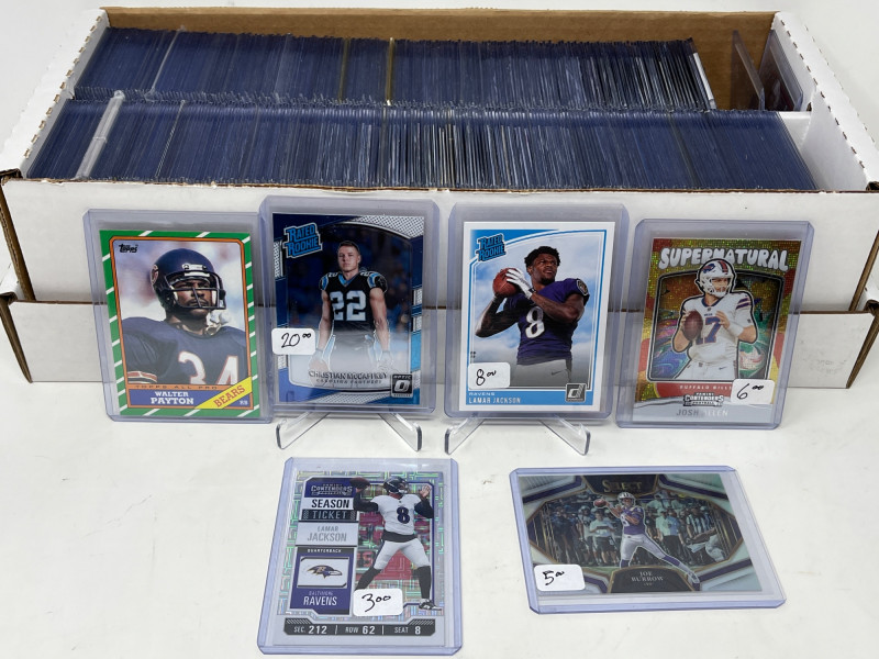 2 Row Box Stuffed W/ Rookies, SP's, HOF'ers (Lamar, CMC Rookie) Lot Includes: Christian McCaffery Optic Rated Rookie, Lamar Jackson Rated Rookie, Joe Burrow, Walter Payton, & So Many More Stars! Another incredible 2 row box filled with NFL's Top Rookies, Players, HOF'ers Not All Cards Pictured All Cards Sleeved & Top Loaded