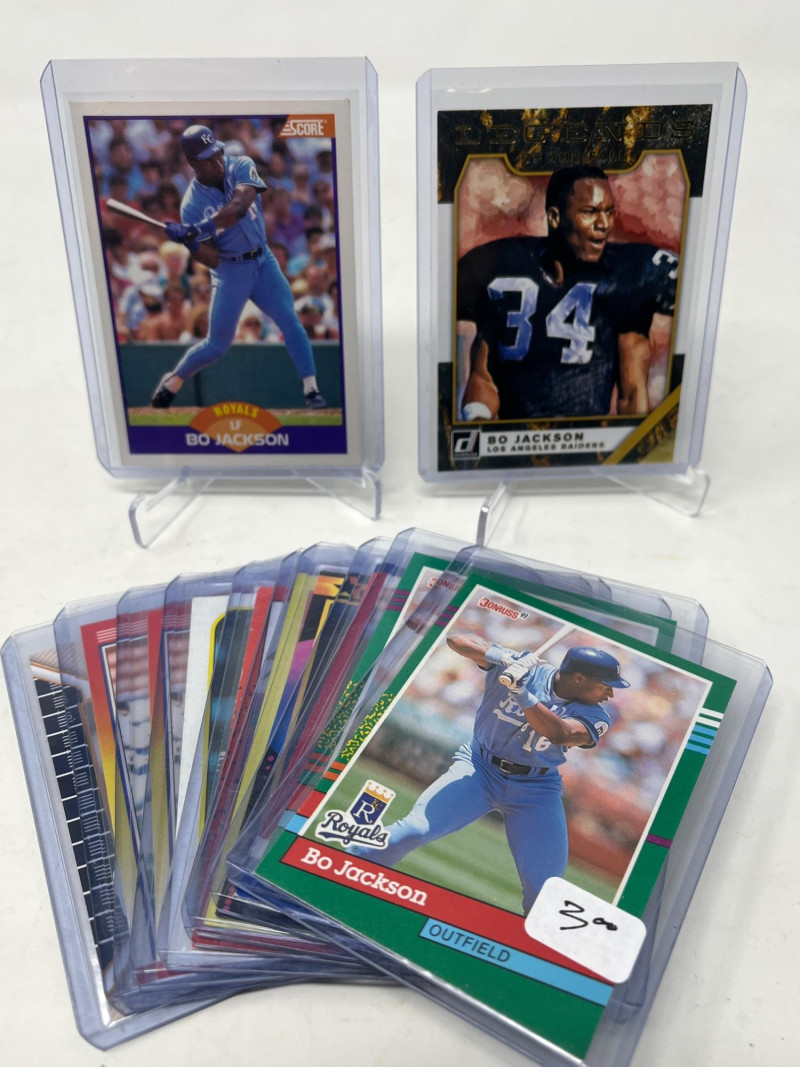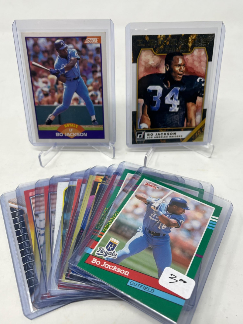 Lot of 12 Bo Jackson Cards (BB & FB) All Cards Pictured All Cards Top Loaded & Sleeved