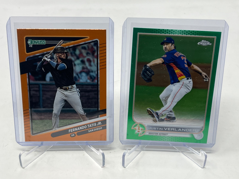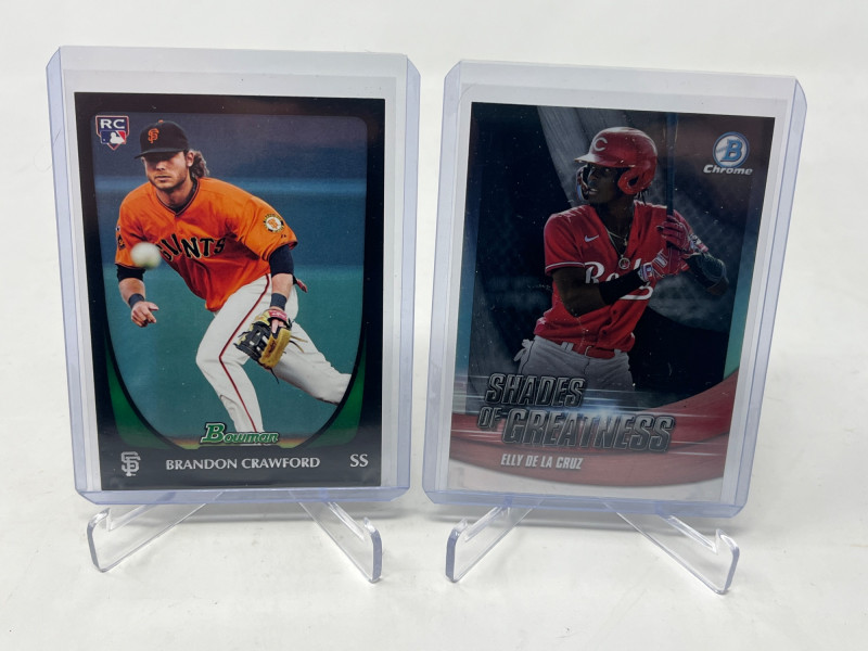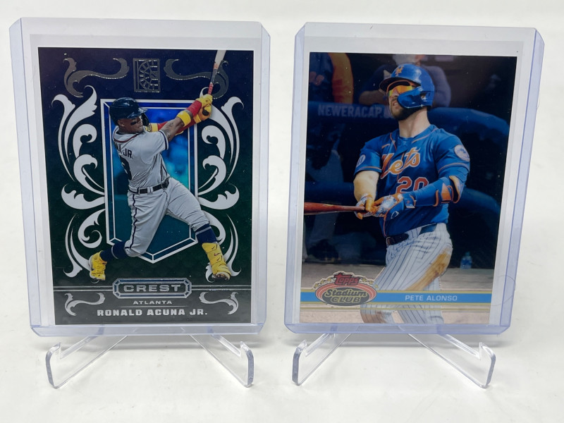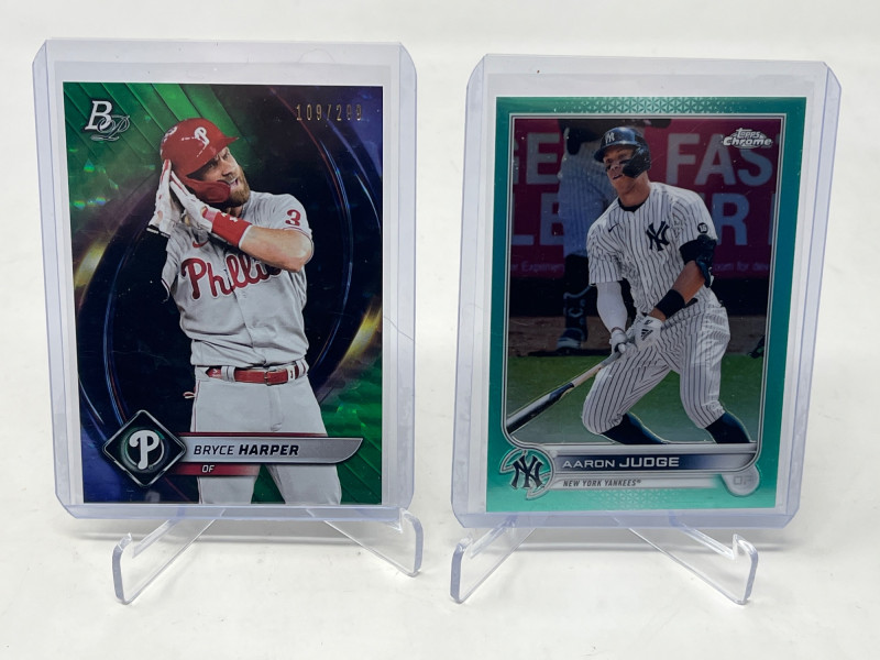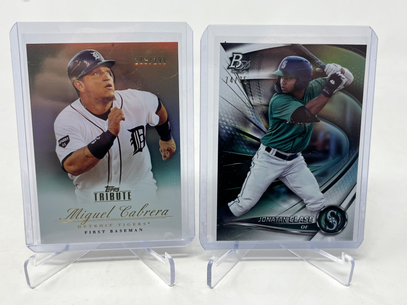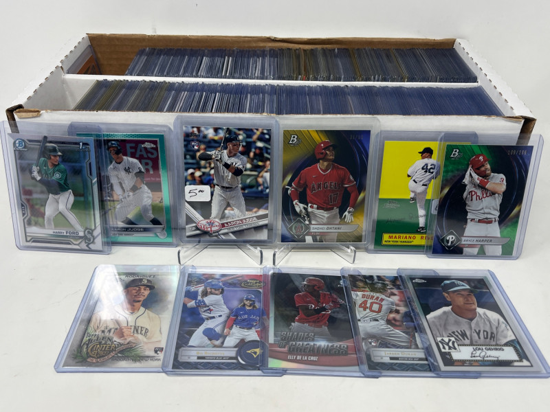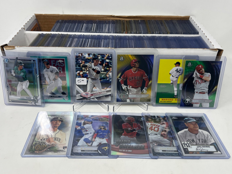 Large 2 Row MLB Rookies/Inserts/SP's (Judge Rookie Ohtani /50) Lot Includes: Aaron Judge Topps 2017 Rookie Card, Shohei Ohtani Numbered /50, Julio Rodriguez A&G Chrome Rookie, Plus More! Not All Cards Are Pictured All Cards Sleeved & Top Loaded Box Consists Mostly Of MLB Stars/Legends Inserts and SP's and Rookie Cards! Crazy Box!