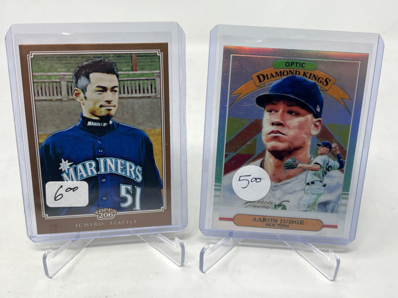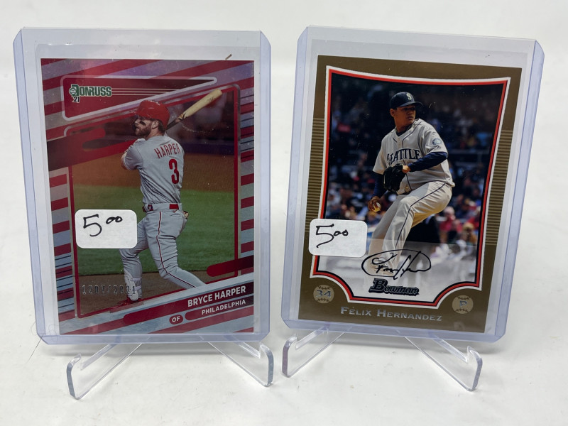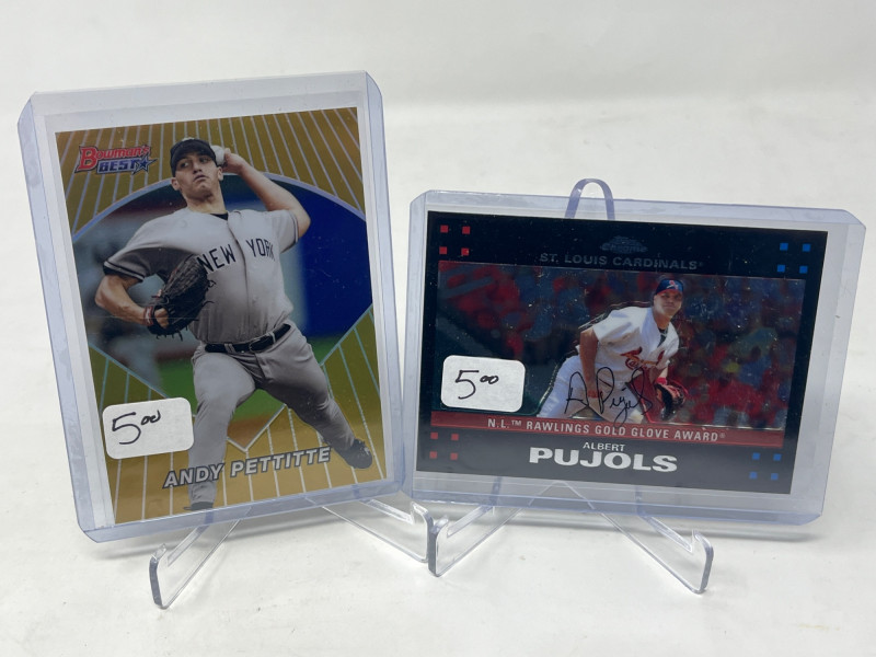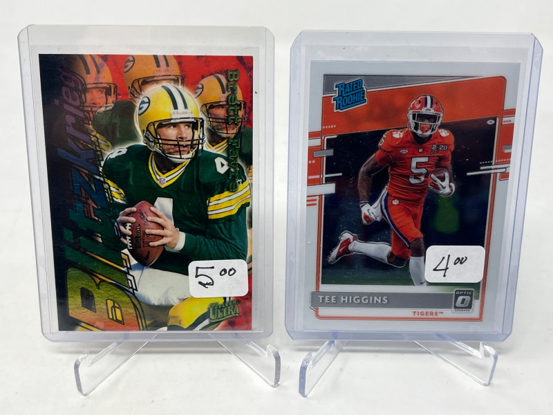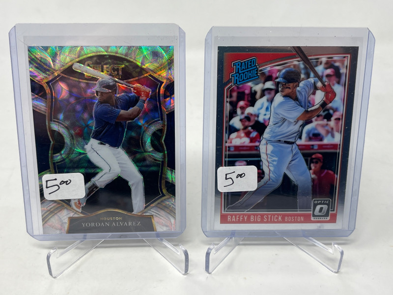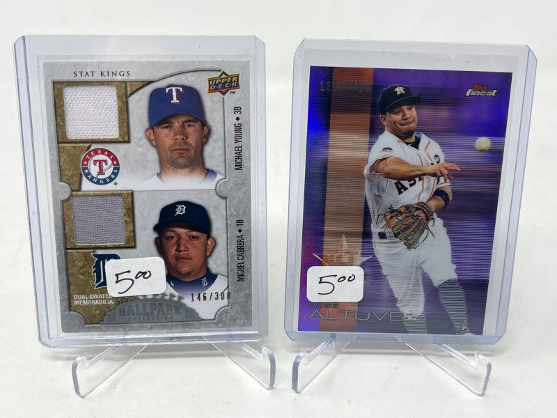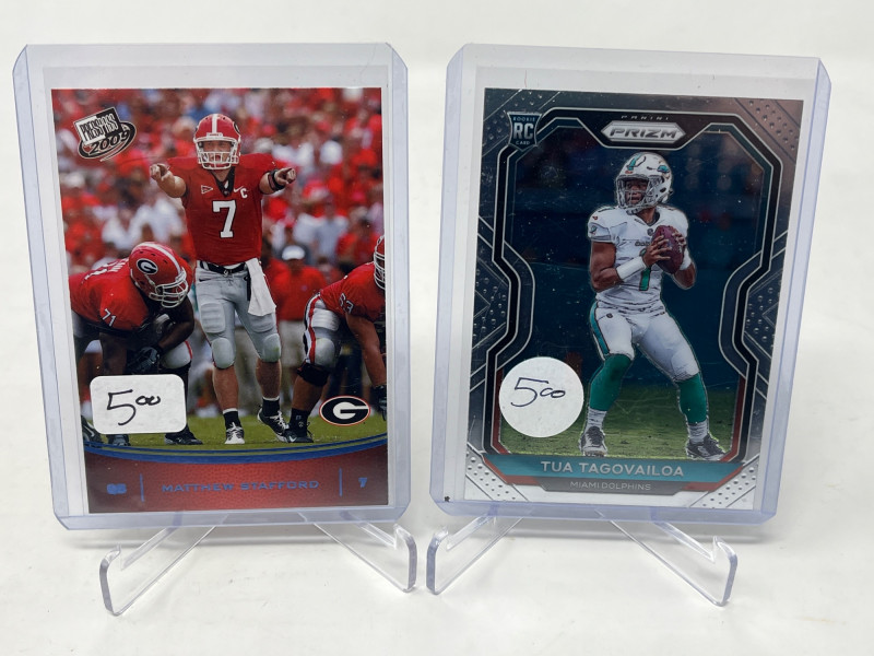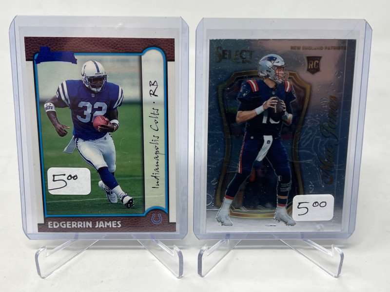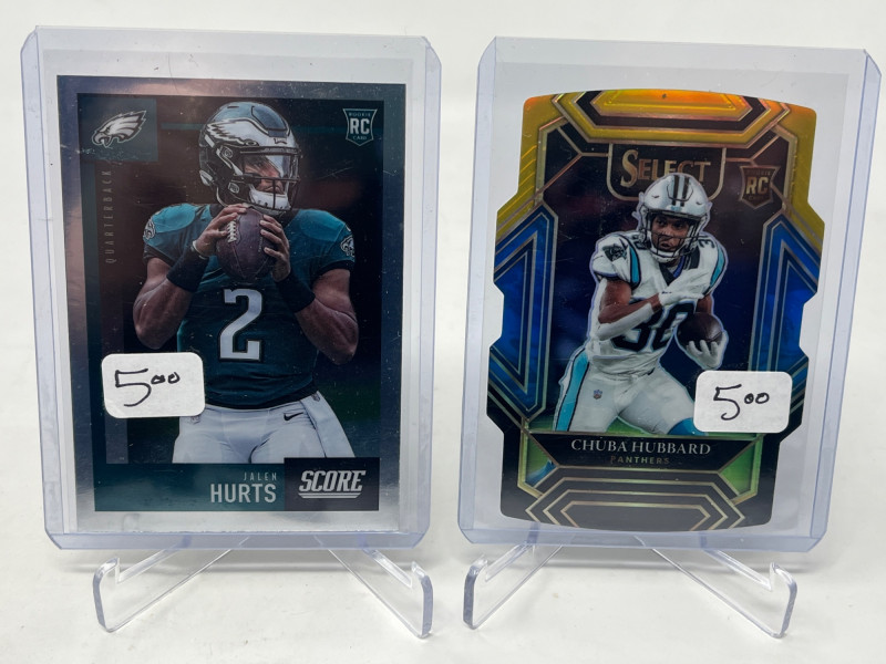 2 Row Box NFL/NBA/MLB Stars & Inserts! This box was priced at $5 per card for card show. Left Side Row is MLB. Right Side Row Is Mostly NFL. Less Than 20 NBA Cards. Not All Cards Are Pictured All Cards Sleeved & Top Loaded