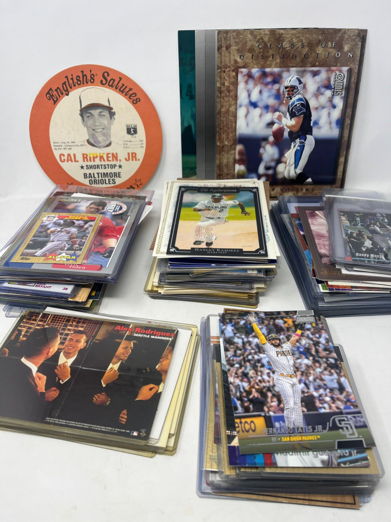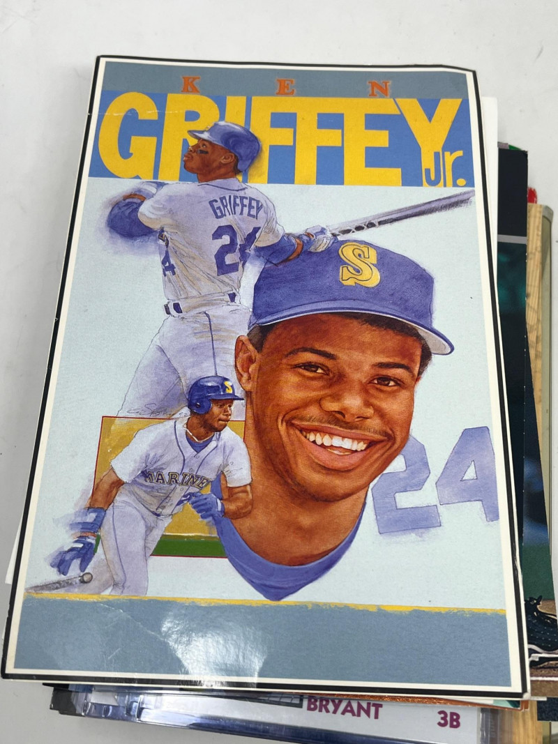 Large Lot of Oversized Sports Cards (Griffey Ripken, Bonds) 1983 Cal Ripken Jr Chicken Lid Not All Cards Pictured Not All Cards Were In Top Loaders